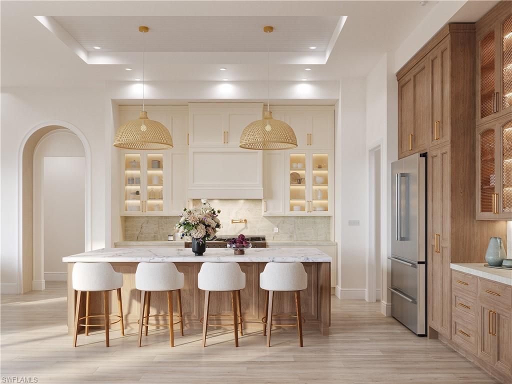 One or more photo(s) has been virtually staged, AI generated or rendered. Under construction and slated for completion June 2026, this exceptional new residence at 335 Burning Tree Drive presents a RARE OPPORTUNITY TO PERSONALIZE A LUXURY HOME in one of Naples’ most desirable settings. Offering over 4,200 square feet of thoughtfully designed space, this 4-bedroom plus den/office, 3-bathroom, 3 car garage home blends refined coastal elegance with modern functionality. Picture jaw...One or more photo(s) has been virtually staged, AI generated or rendered. Under construction and slated for completion June 2026, this exceptional new residence at 335 Burning Tree Drive presents a RARE OPPORTUNITY TO PERSONALIZE A LUXURY HOME in one of Naples’ most desirable settings. Offering over 4,200 square feet of thoughtfully designed space, this 4-bedroom plus den/office, 3-bathroom, 3 car garage home blends refined coastal elegance with modern functionality. Picture jaw dropping CEILING HEIGHTS of up to 14 FT that engulf the home with NATURAL LIGHT through a plethora of large-scale impact resistant windows and 10 ft sliding doors. The 8 in wide plank white oak floors lead you throughout the open concept design of the home. The chef-inspired kitchen features walnut cabinetry, quartzite countertops, Thermador appliances with a gas range, pantry, and bar with a wine fridge. The spacious primary suite spans an entire wing of the home. Offering total privacy, the massive bedroom opens up to the gorgeous lanai and features two large walk-in closets, a spa like bathroom with marble finishes, two separate vanities , a makeup station, massive walk-in shower with bench seating + multiple shower heads, and soaking tub. Three additional guest bedrooms and a dedicated office provide flexibility for family, guests, or work-from-home needs. High-end finishes, carefully curated design selections, and quality craftsmanship are evident throughout. The outdoor living space is anchored by a RESORT-STYLE SALTWATER POOL featuring a sun-shelf with bubbler & spa, a fully equipped OUTDOOR KITCHEN with grill, sink, and fridge, and pool cage-ideal for enjoying Naples’ year-round sunshine and entertaining guests in style. Set on a lush, private lot, in an X FLOOD Zone-no flood insurance necessary; the home enjoys a tranquil backdrop of mature landscaping. This home is perfectly situated directly across the street from the manicured private GOLF COURSE of THE COUNTRY CLUB OF NAPLES—delivering the best of serene privacy and picturesque surroundings without mandatory membership. This members-only club features a golf course designed by Bill Diddel that recently underwent an $8 million restoration, tennis courts, pickleball courts, clubhouse with restaurant, and endless social activities. Best of all, this community has NO mandatory HOA- no fees, and no rental restrictions! With construction still underway, buyers have the unique opportunity to customize select finishes and details to suit their personal taste. Located minutes from downtown Naples, beaches, dining, shopping, and FANTASTIC SCHOOLS, this home delivers luxury living in a premier location. VIEW VIRTUAL TOUR TO WALK THROUGH THIS INCREDIBLE HOME.